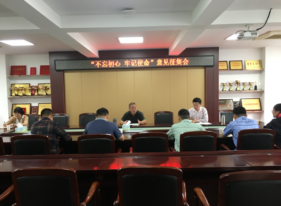 10月9日上午,在201會(huì)議室組織召開了“不忘初心 牢記使命”意見征集會(huì),會(huì)議由公司黨支部書記楊涌主持召開,各項(xiàng)目部黨支部宣傳專員參加。各項(xiàng)目部參會(huì)人員對(duì)目前工程項(xiàng)目進(jìn)展的情況和遇到的問題提出了看法,以及各臨時(shí)黨支部在宣傳、學(xué)習(xí)、生活等方面提出各自的相關(guān)意見建議。