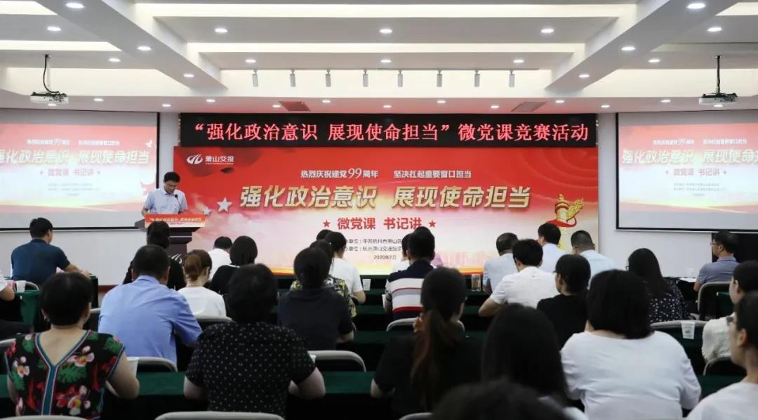 為慶祝建黨99周年,落實(shí)我區(qū)強(qiáng)基固本年活動(dòng)精神,響應(yīng)全域黨建大比武部署,進(jìn)一步營(yíng)造黨建領(lǐng)域比學(xué)趕超氛圍,緊緊抓牢支部書記這一黨組織的“牛鼻子”與“關(guān)鍵少數(shù)”,增強(qiáng)守初心、擔(dān)使命的思想和行動(dòng)自覺(jué),7月16日,由區(qū)委組織部主辦,蕭山交投集團(tuán)承辦的區(qū)屬國(guó)企組“微黨課·書記講”競(jìng)賽活動(dòng)舉行。