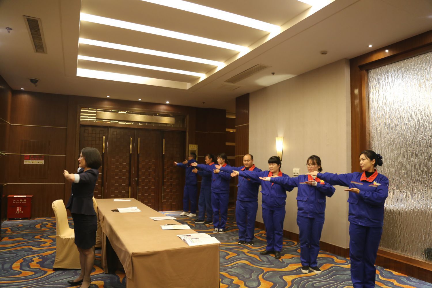 戚老師以輕松愉悅的授課方式,分別從職場素養、服務禮儀、禮儀規范八步加油操作等方面內容,結合加油站實際情境及相關例子進行了系統的理論講解和實操訓練指導。培訓現場生動有趣,戚老師與學員互動頻繁,大家認真聽講并及時做好筆記。理論與實操相結合的培訓方式有效強化了大家的學習意識,加深了學習印象,整體學習氣氛良好。尤其在禮儀規范八步加油操分組演練及考核環節,戚老師將加油站學員進行分組,分別由一名管理員帶領七到八名一線員工進行組隊,模擬日常加油服務情境,通過規范化服務用語和手勢進行小組展示。各組之間的比拼激發了學員“比、學、趕、超”的拼搏熱情,方便大家更好地掌握培訓所學知識。