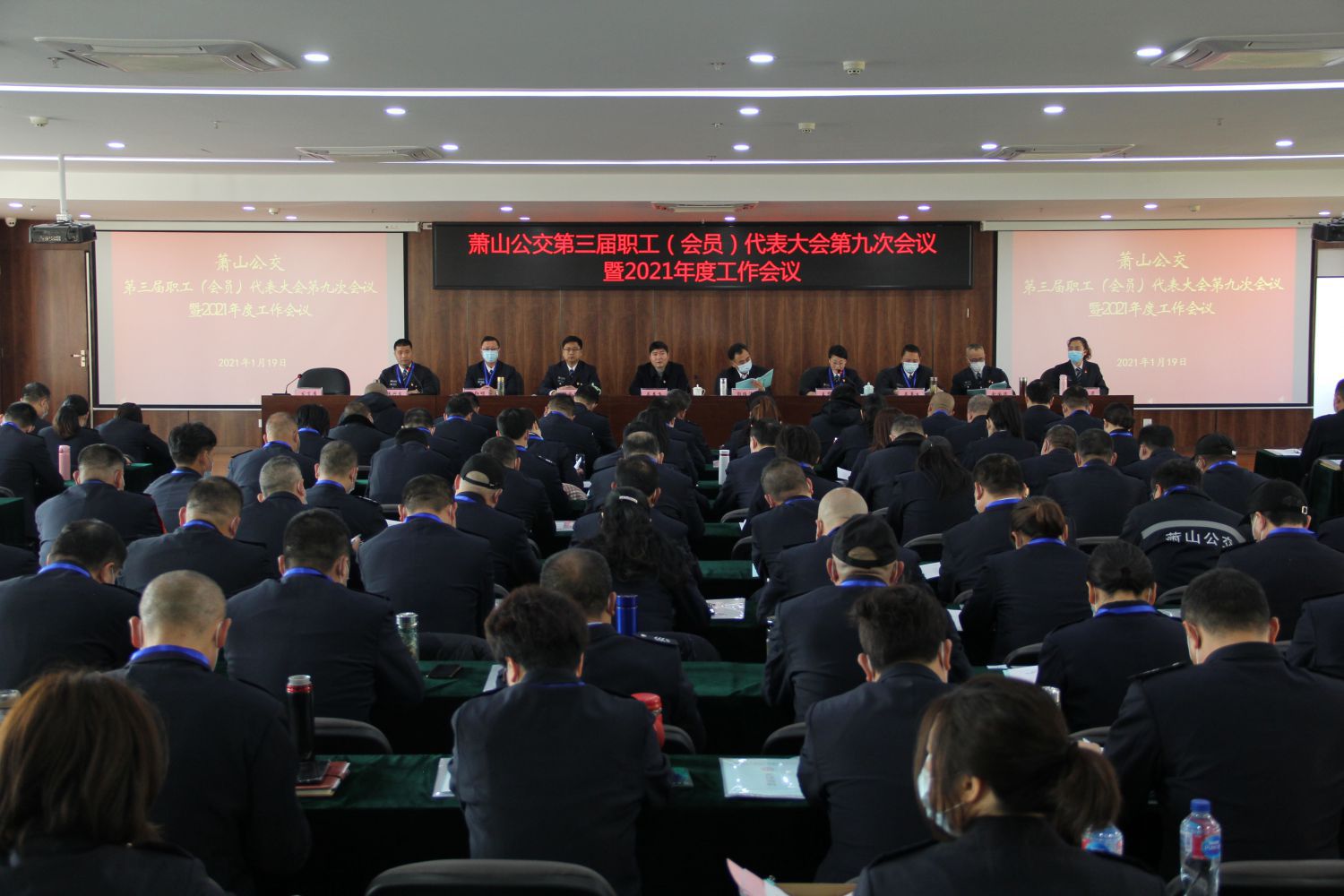 1月19日下午,蕭山公交第三屆職工(會員)代表大會第九次會議暨2021年工作會議隆重召開,公司職工代表、列席代表出席大會。杭州公交集團黨委副書記、工會主席吳益飛,蕭山交投集團黨委委員、紀委書記、工會主席郭維濤等領導蒞臨指導。會議由公司黨委委員、副總經理韓興良主持。