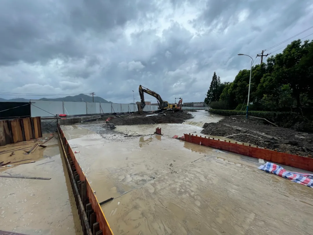 因暴雨產(chǎn)生大量水流,河上鎮(zhèn)緊急聯(lián)絡請求調(diào)用備料場宕渣,浦陽江開發(fā)公司總經(jīng)理朱華生緊急調(diào)用運輸車30輛,宕渣51車,挖機3臺,將備料宕渣運至圣達產(chǎn)業(yè)園現(xiàn)場,親自指揮挖機進行裝卸,搭建圍堰,直至晚上23時。