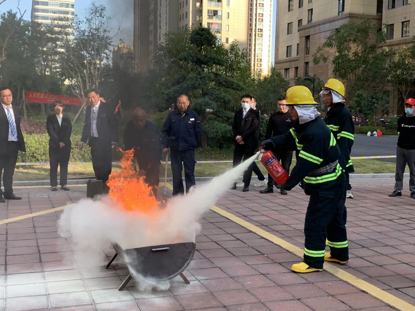 消防演練按照指定、有序、緊張地進行。各演練工作組在聽到指令后,迅速到位,并出色完成演練項目。