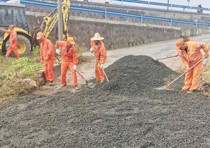 對現(xiàn)場進行仔細踏勘后,養(yǎng)護公司班子領導在現(xiàn)場制定了路面修補方案:需要對該路段預埋排水管,做好路基整平和水泥穩(wěn)定碎石基層鋪設后,進行瀝青攤鋪。