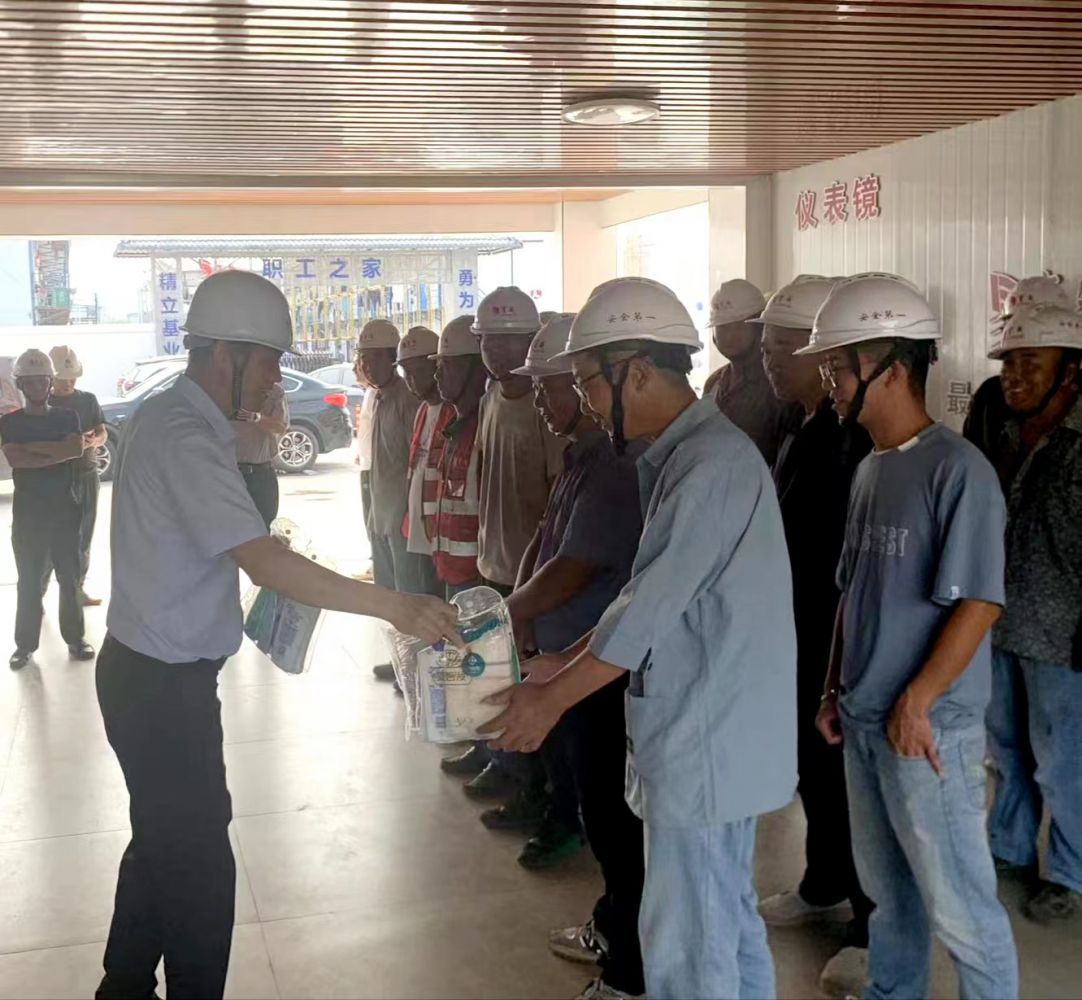 公司黨支部書記邵發(fā)強(qiáng)、副總經(jīng)理金莎帶隊(duì)前往黨灣安置房項(xiàng)目施工現(xiàn)場(chǎng),走訪慰問一線施工人員,向堅(jiān)守崗位的施工人員送上高溫慰問品,感謝他們的堅(jiān)守和付出,為工程項(xiàng)目安全有序推進(jìn)提供了堅(jiān)強(qiáng)保障。同時(shí),叮囑施工單位要切實(shí)關(guān)心一線施工人員,合理安排工人的工作和休息時(shí)間,切實(shí)保障工程質(zhì)量、施工進(jìn)度和生產(chǎn)安全。