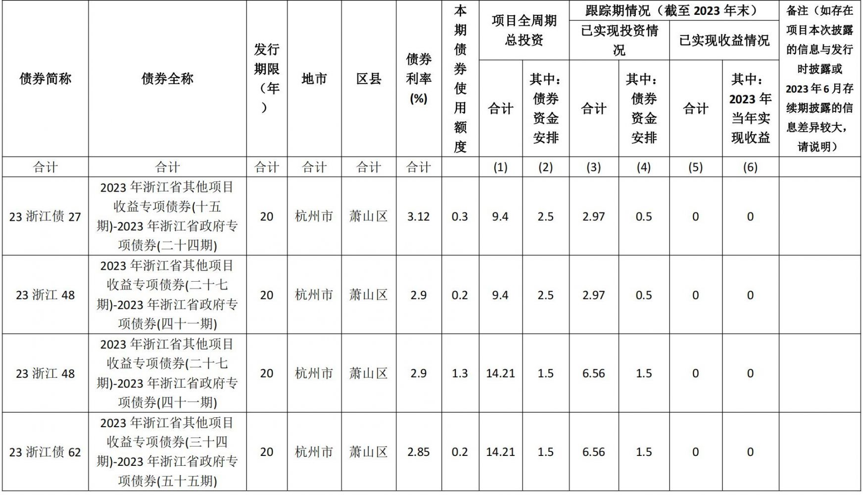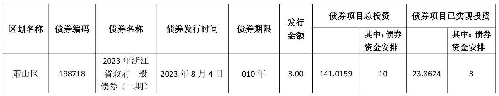 政府新增一般債券存續期對應項目情況表
