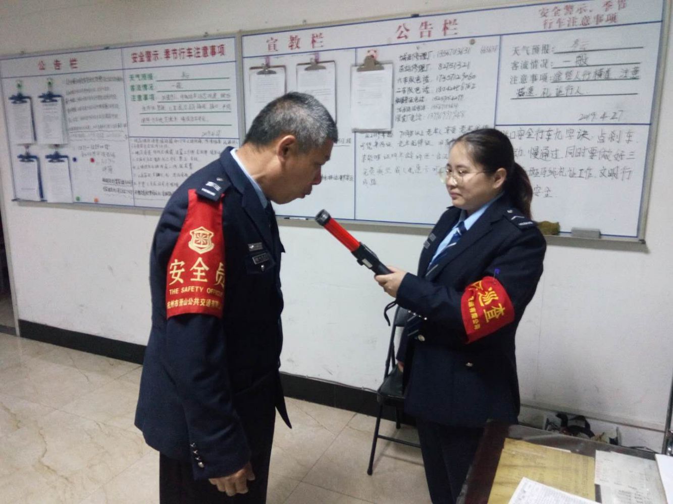 開車不喝酒,酒后不開車!炎炎夏日已經(jīng)來(lái)臨,下班后約上三五好友聚在一起吃點(diǎn)夜宵喝點(diǎn)酒已經(jīng)成了人們的一種生活常態(tài),但對(duì)城市公共交通安全衛(wèi)士——公交司機(jī)來(lái)說(shuō),這件事確是萬(wàn)萬(wàn)不可的。為給乘客營(yíng)造安全的出行環(huán)境,確保乘客安全出行,提高司機(jī)安全行車意識(shí),5月15日-19日第三屆中國(guó)國(guó)際茶業(yè)博覽會(huì)舉行期間,蕭山公交始終把安全工作擺在首要位置,多措并舉加大公交駕駛員崗前酒精測(cè)試監(jiān)督和抽查力度:各車隊(duì)組織安全管理人員每天清晨在各中心站點(diǎn)調(diào)度室內(nèi)對(duì)所屬司機(jī)進(jìn)行現(xiàn)場(chǎng)呼氣式酒精含量測(cè)試,,嚴(yán)查“隔夜酒”,謹(jǐn)防第二天“宿酒”現(xiàn)象,避免駕駛員疲勞駕駛,從源頭上為公交安全行車再添一道防線,保障乘客安全出行。